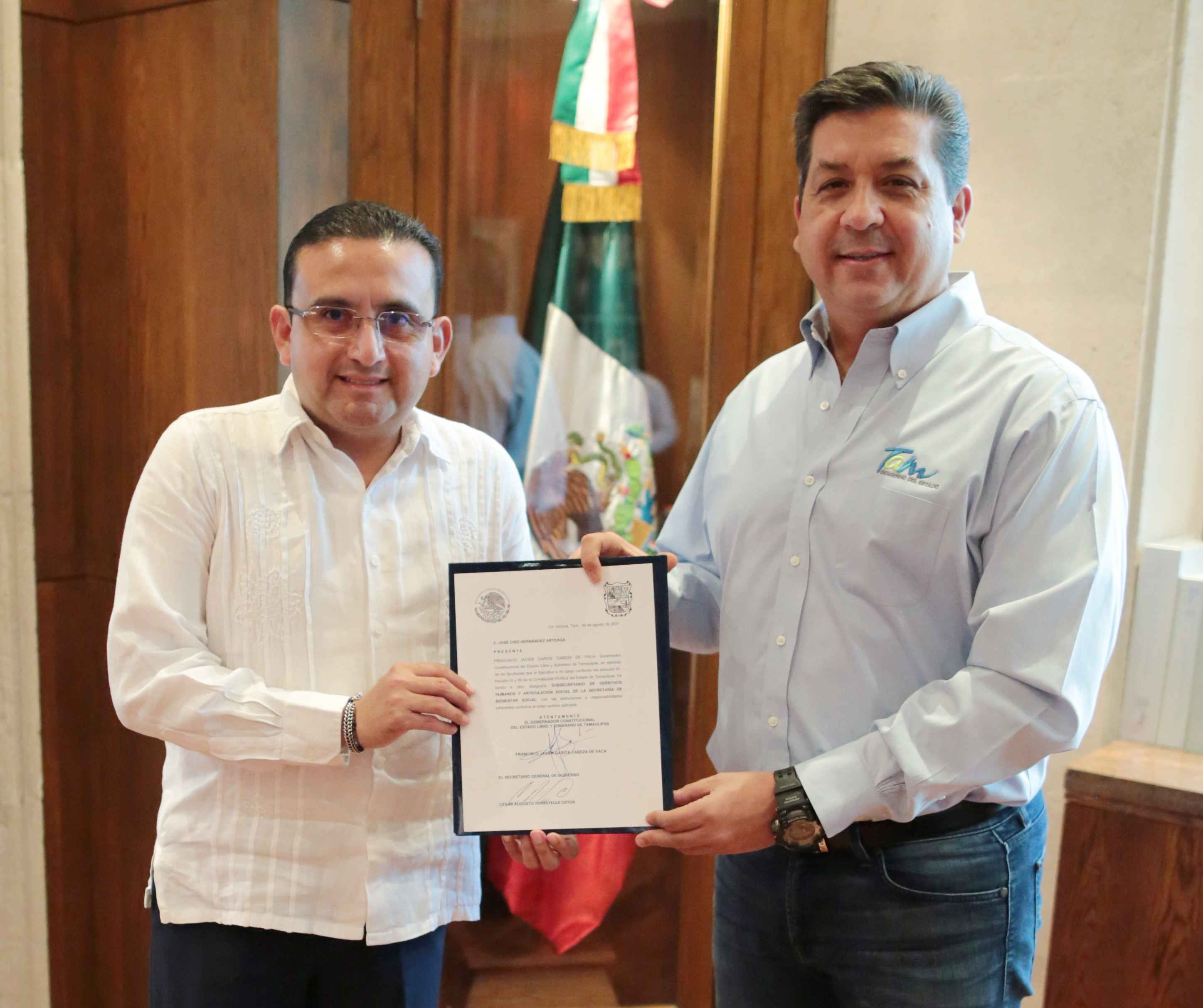 Como Subsecretario de Derechos Humanos y Articulación Social de SEBIEN fue designado José Ciro Hernández Arteaga, quien cuenta con licenciatura en Administración de Empresas por la Universidad Autónoma de Tamaulipas y ha fungido como Tesorero Municipal de Altamira, Síndico, Jefe de la Oficina Fiscal y Diputado Local.